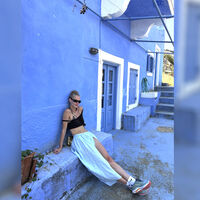 42-летняя Светлана Ходченкова предстала перед камерой в черном топе, который был надет поверх серого лифа бикини. Актриса добавила к образу белую макси-юбку с разрезом до бедра, носки, кроссовки, золотистую сумку, серьги и солнцезащитные очки. Знаменитость была запечатлена с собранными в пучок волосами и без косметики.