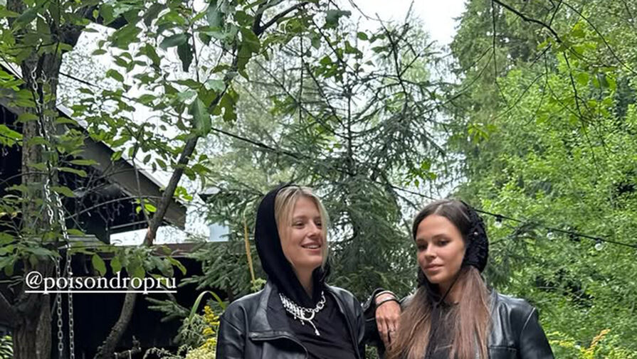 37-летняя Софья Эрнст позировала в укороченном черном топе, кожаной косухе, присборенной зеленой юбке и туфлях с носками. Волосы она собрала в пучок и отказалась от макияжа. Вместе с ней на прогулке позировала ее подруга.