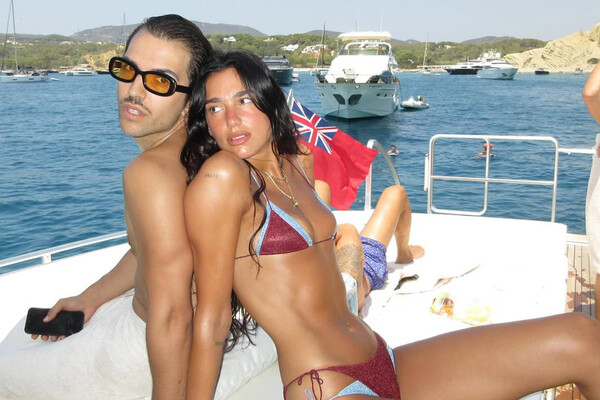 Дуа Липа показала фигуру в двойном красно-синем крошечном бикини. Певица распустила волосы и отказалась от макияжа. Вместе с ней в кадре позировал ее жених в плавках.