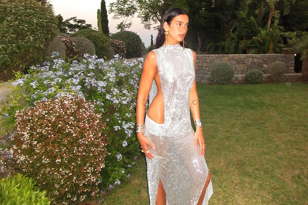 Дуа Липа показала кадры с празднования своего предстоящего дня рождения. Певица отдыхала с возлюбленным Каллумом Тернером и друзьями на Ибице. Поп-исполнительница предстала перед камерой в серебристом платье с вырезами до бедра, под которое не стала надевать бюстгальтер. Артистка добавила к образу массивные золотые серьги, браслеты, кольца и босоножки на каблуках. Знаменитость позировала с уложенными распущенными волосами и макияжем.