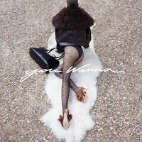 На одном из кадров 26-летняя Алеся Кафельникова предстала перед камерой в черных трусах, кожаной куртке с мехом и колготках в крупный горох. Образ модели дополнили темно-бежевые босоножки и черная кожаная сумка. Манекенщице уложили волосы в гладкий пучок. Знаменитость лежала на овечьей шкуре на щебенке.