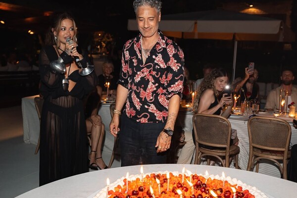 16 августа Тайка Вайтити отпраздновал 50-летие. В честь своего юбилея режиссер организовал вечеринку, на которую пригласил близких. Жена продюсера выбрала для мероприятия черное прозрачное макси-платье с драпировкой и декольте до талии. Рита Ора добавила к образу массивные браслеты, ожерелье и серьги. Певица уложила волосы в локоны и сделала макияж с черными стрелками, тенями и нюдовой помадой.