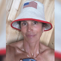 59-летняя Синди Кроуфорд показала лицо без макияжа и фильтров во время парения в сауне. Волосы она прикрыла шапочкой с флагом США.