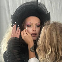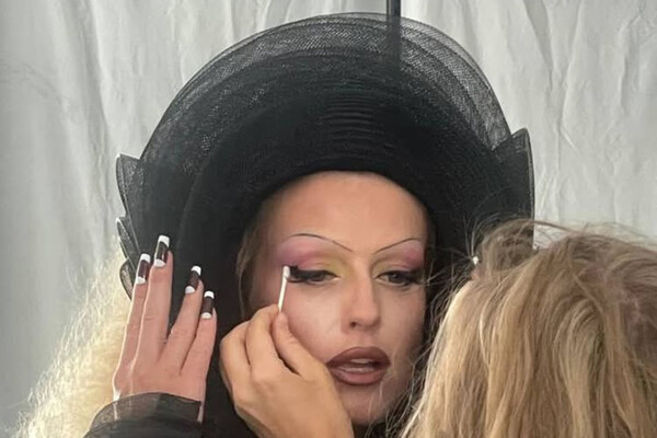 Софья Эрнст позировала в черном полупрозрачном платье со шляпой. Ей также сделали грим с черными бровями-«ниточками», угольно-черными стрелками и шоколадными губами.