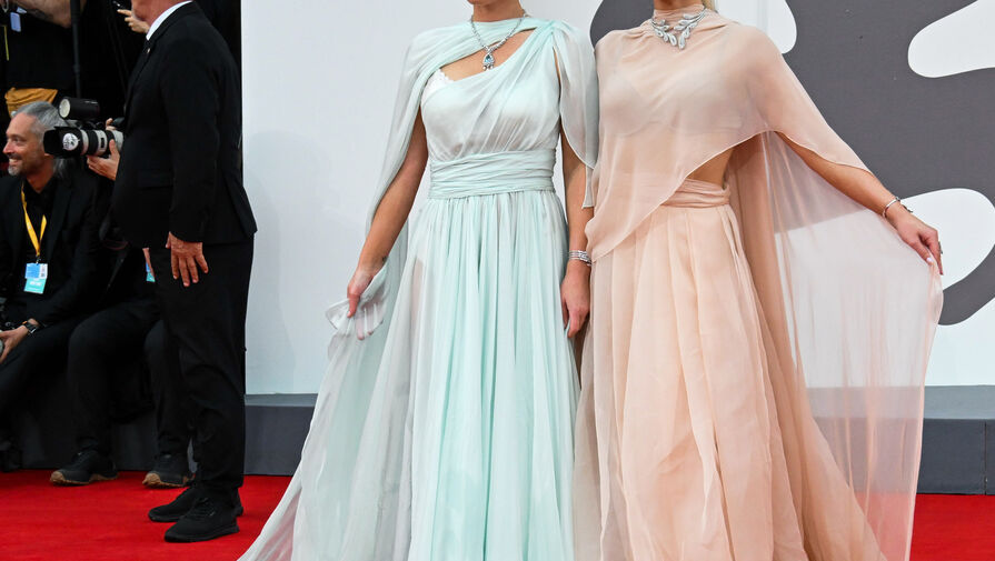 Амелия и Элиза Спенсер вышли на красную ковровую дорожку в похожих платьях: голубом и бежевом с разрезами и длинным шлейфом. Образы они дополнили массивными украшениями.