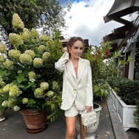 42-летняя МакSим предстала перед камерой в нежно-розовом топе, который сочетала с молочным жакетом и короткими шортами. Певица добавила к образу массивные золотые серьги, кожаную сумку и босоножки на каблуках. Артистка уложила волосы и сделала макияж с черными стрелками и розовыми губами.