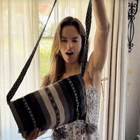 44-летняя Алессандра Амбросио позировала в мини-платье с цветочным принтом, глубоким декольте и голой спиной. Волосы она распустила и отказалась от макияжа. В кадре модель распаковала подарок из Перу — сумку ручной работы.