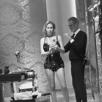 В марте Светлана Лобода показала бектэйдж со своей съемки. Певица разместила в личном блоге ролик, где позировала в широких джинсах, пушистых нарукавниках и кожаном чокере с жемчужинами. Артистка прикрывала обнаженную грудь рукой. Знаменитости сделали объемную укладку и макияж с угольно-черными стрелками.