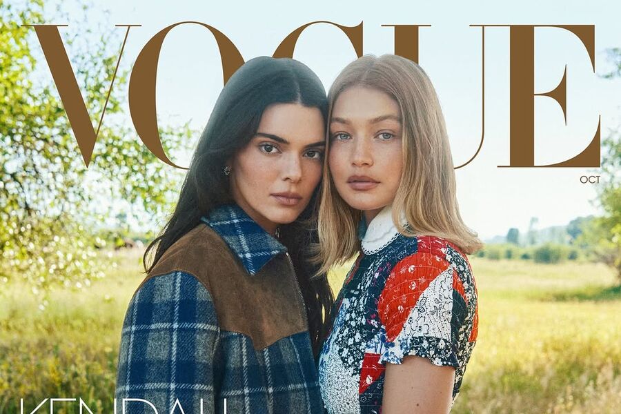 Джиджи Хадид и Кендалл Дженнер стали героинями нового выпуска журнала Vogue. На обложке супермодель предстала в разноцветном облегающем мини-платье с белым воротником, которое дополнила золотым кольцом. Звезда реалити-шоу была запечатлена в полосатом костюме, который состоял из куртки и мини-юбки. Манекенщицам сделали укладки и макияж в естественном стиле. Они улыбались, стоя на ранчо.