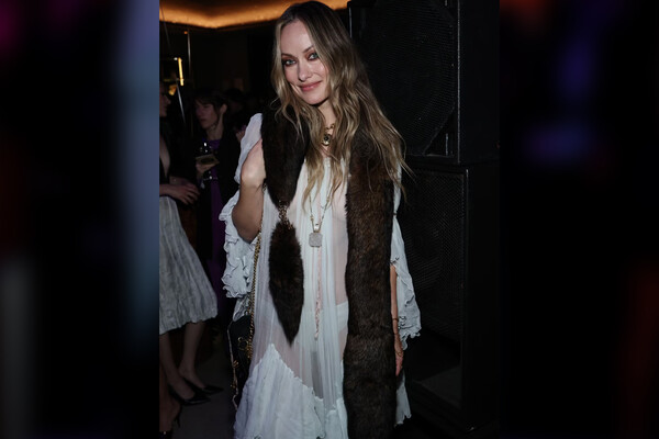 41-летняя Оливия Уайлд вышла на публику в «голом», белом платье. Образ дополнила накидка из меха, подвески на шее и замшевые розовые ботинки. Актрисе сделали укладку с легкими локонами и вечерний макияж.