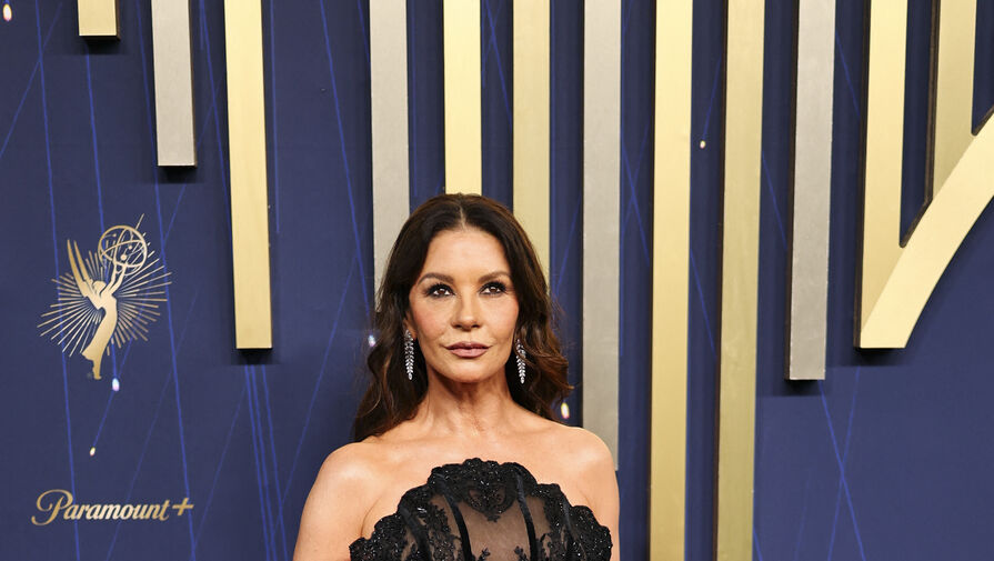 55-летняя Кэтрин Зета-Джонс стала гостьей церемонии премии «Эмми», которая состоялась 14 сентября в Лос-Анджелесе. Актриса предстала на красной дорожке в черном макси-платье с полупрозрачным верхом, украшенном пайетками. При этом артистка не стала надевать бюстгальтер. Знаменитость добавила к образу блестящие серьги и босоножки на каблуках. Кэтрин Зете-Джонс уложили волосы в локоны и сделали макияж с черной подводкой, румянами и коричневой помадой.