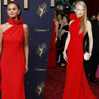 Селена Гомес посетила церемонию вручения премии «Эмми», которая прошла 14 сентября в Лос-Анджелесе. Певица появилась на публике вместе со своим женихом, музыкальным продюсером Бенни Бланко. Артистка надела красное силуэтное макси-платье Louis Vuitton с открытыми плечами. В похоже образе Николь Кидман позировала на церемонии вручения премии «Оскар» в 2007 году.