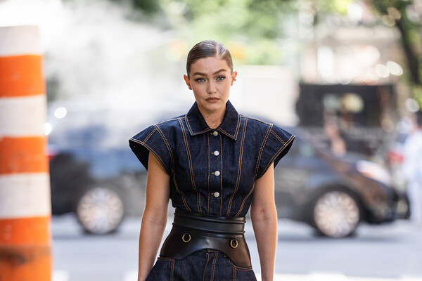 Папарацци подловили 30-летнюю Джиджи Хадид во время съемки для бренда Maybelline в Сохо, в Нью-Йорке. Супермодель была запечатлена в темно-синем джинсовом мини-комбинезоне, который дополнила кожаным поясом и ботильонами. Манекенщице собрали волосы в гладкий низкий хвост и сделали макияж с угольно-черными стрелками, румянами и помадой.