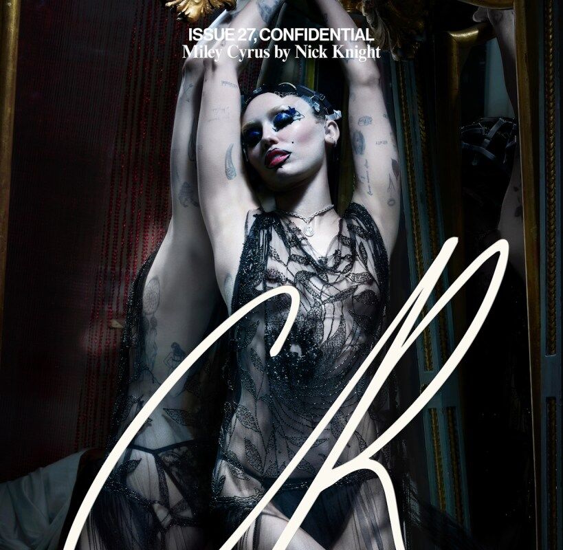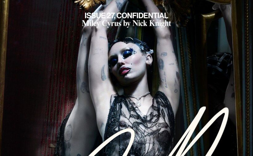 32-летняя Майли Сайрус позировала в пышной блестящей юбке от бренда Harris Reed и с голым торсом, прикрыв волосами обнаженную грудь. Она также позировала в боди, состоящем из нитей, без нижнего белья.
