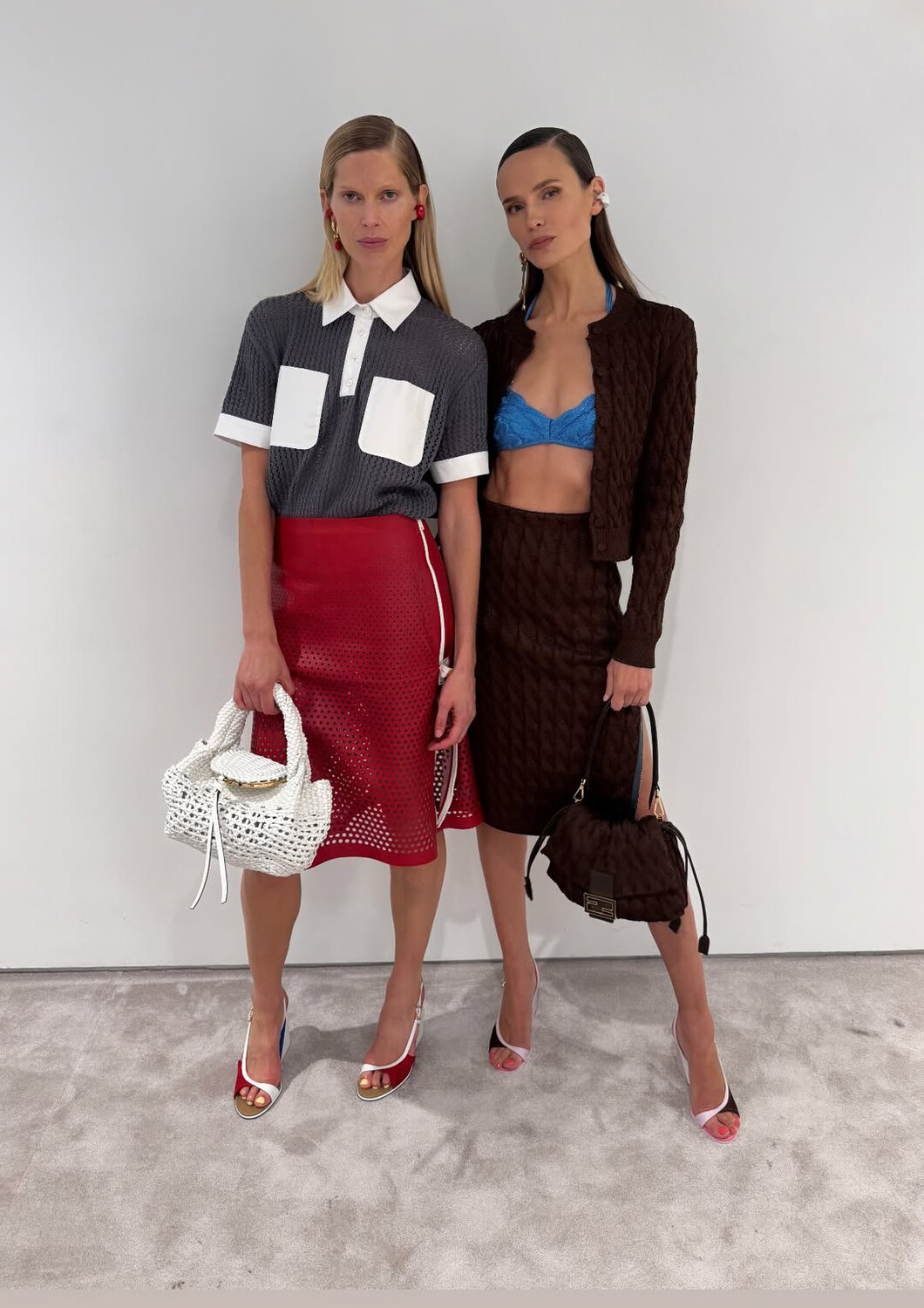 40-летняя Наташа Поли приняла участие в показе бренда Fendi, который прошел в рамках Недели моды в Милане. Супермодель вышла на подиумов в шоколадном трикотажном костюме, состоящим из кардигана и юбки с разрезом. Манекенщица также надела голубой бюстгальтер, босоножки на каблуках и серьги. Образ звезды подиумов завершила сумка с монограммой бренда. Наташе Поли уложили распущенные волосы и сделали макияж.