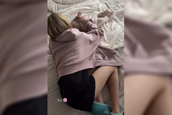 В кадре модель показала, как дочь Тимати от Алены Шишковой, Алиса, играет с их дочерью Эммой на кровати. Обе девочки были спиной к камере.