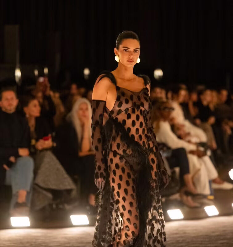 Модель Кендалл Дженнер появилась на показе в прозрачном платье