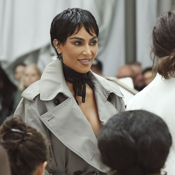 Ким Кардашьян примерила кардинально новый имидж — черный короткий парик, сделанный под стрижку ее матери, Крис Дженнер. Бизнесвумен также была одета в серый тренч и чокер из ленты.