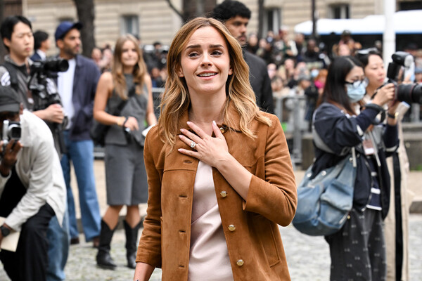 Эмма Уотсон появилась на показе бренда Miu Miu, который прошел во время Недели моды в Париже. Журналисты заметили на безымянном пальце артистки кольцо в винтажном стиле с бриллиантом и предположили, что она помолвлена с возлюбленным, однокурсником из Оксфорда Кираном Брауном.