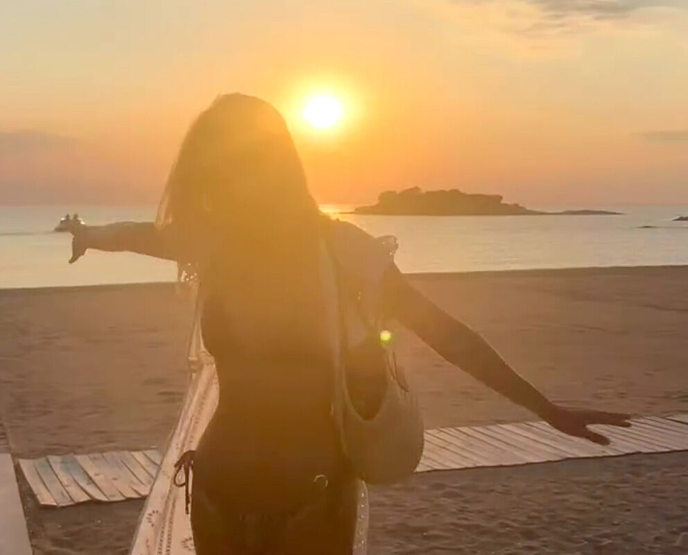 Клементина де Вер Драммонд предстала перед камерой в крошечном бикини, которое дополнила белой накидкой с короткими рукавами и соломенной сумкой на плечо. Дочь Клаудии Шиффер позировала с распущенными волосами на пляже.