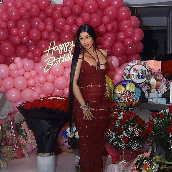 Карди Би показала кадры, сделанные во время празднования ее дня рождения. 33-летняя рэперша выбрала для торжества бордовое облегающее макси-платье с вырезами и декольте, которое дополнила босоножками на каблуках, браслетами, массивными серьгами и кольцами. Исполнительнице уложили распущенные волосы и сделали макияж с коричневыми тенями, черными стрелками и матовой помадой.