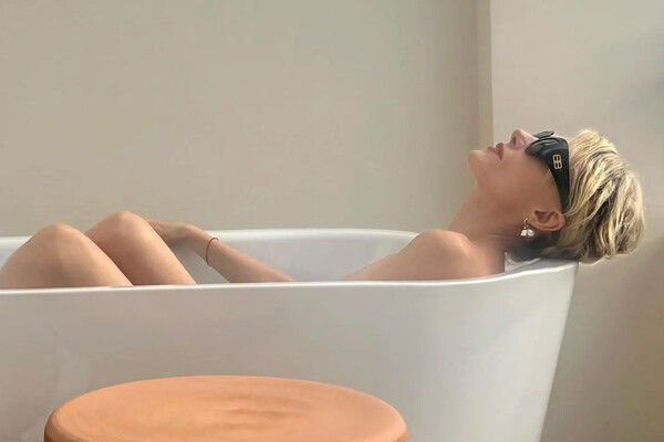 58-летняя Рената Литвинова предстала перед камерой без одежды, она надела только черные солнцезащитные очки Balenciaga и массивные серьги. Актриса сидела с уложенными волосами и макияжем с красной помадой в ванной.