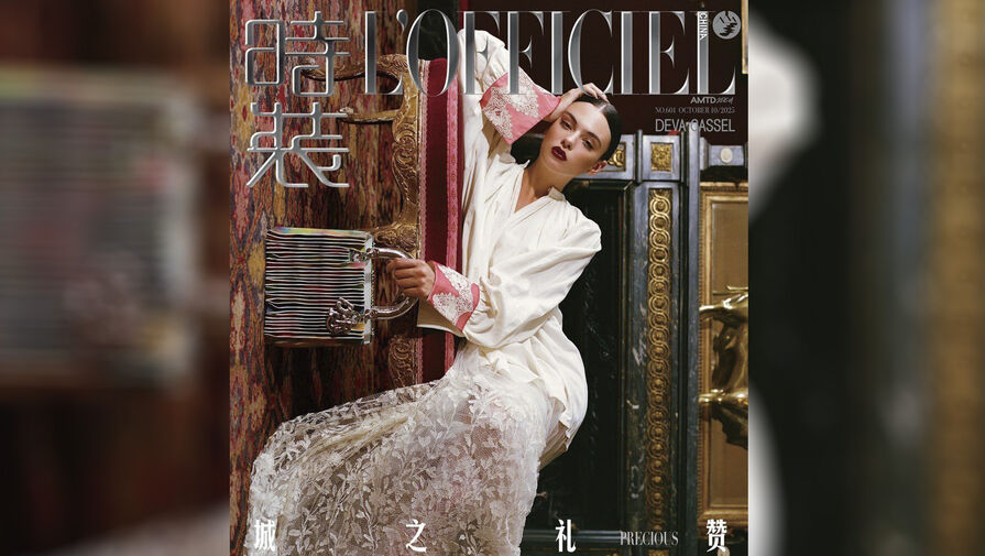 21-летняя Дева Кассель стала лицом нового выпуска китайского журнала L'officiel. На обложке модель предстала в белой блузе с вышивкой на рукавах и кружевной полупрозрачной юбке. Образ манекенщицы дополнили серьги и разноцветная сумка Dior. Витражисты сделали знаменитости макияж с бордовой помадой, а стилисты собрали волосы в гладкий пучок.