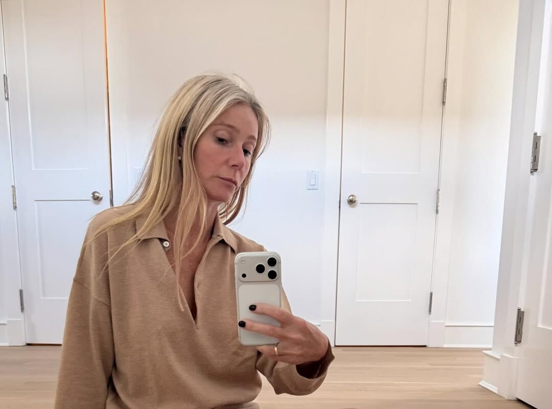 53-летняя Гвинет Пэлтроу сидела перед зеркалом в бежевом свитере. При этом актриса не стала надевать юбку или брюки. Артистка была запечатлена с распущенными волосами и без косметики.