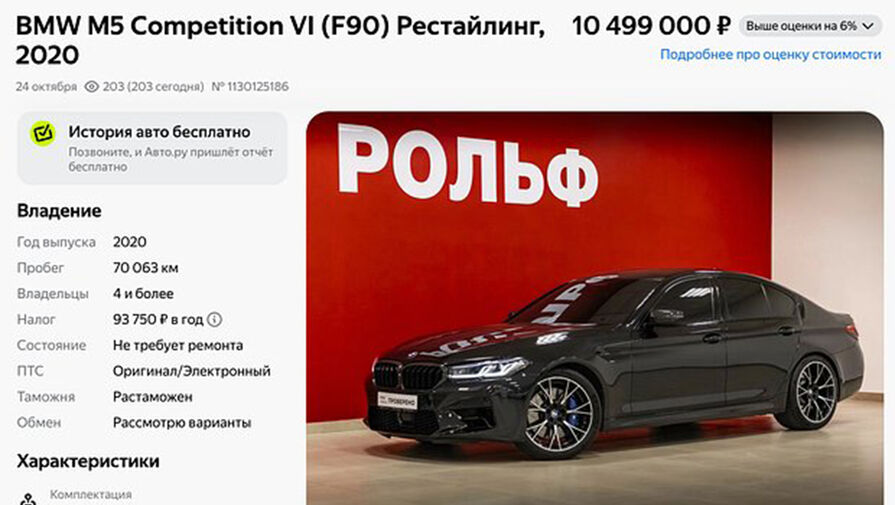 Речь идет о черном BMW M5 2020 года выпуска. На платформе указано, что машина в полном порядке и проходила регулярное обслуживание. Пробег автомобиля превышает 70 тысяч километров. Мощность двигателя спортивного седана составляет 625 лошадиных сил, в оснащение включено около 60 опций. Музыкант рассчитывает выручить за продажу 10,5 млн рублей.