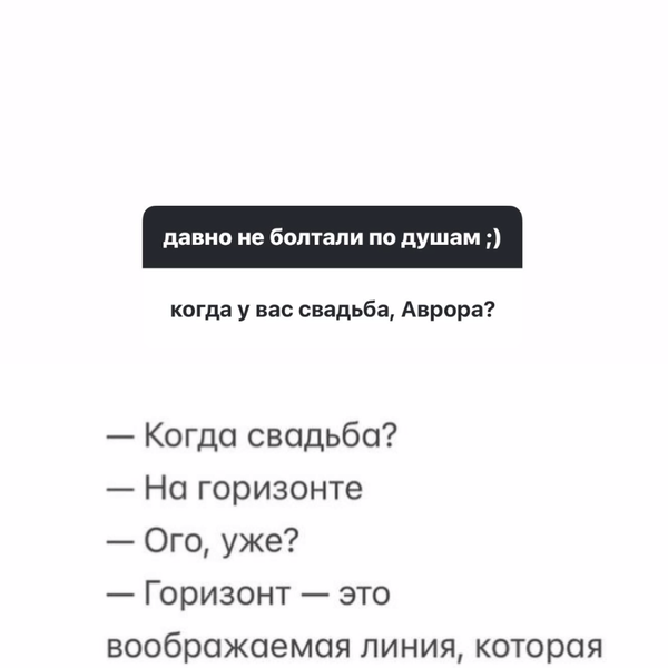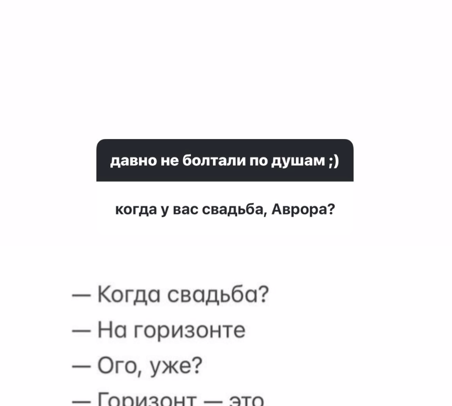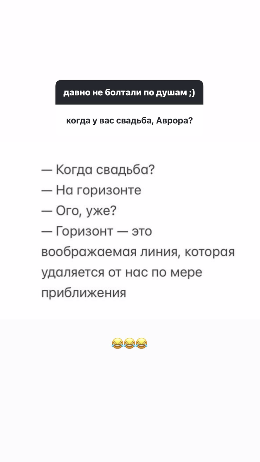 Одна из подписчиц поинтересовалась у Авроры Кибы, когда состоится их с Григорием Лепсом свадьба. 19-летняя невеста народного артиста России прикрепила мем, в котором торжество сравнивается с горизонтом.