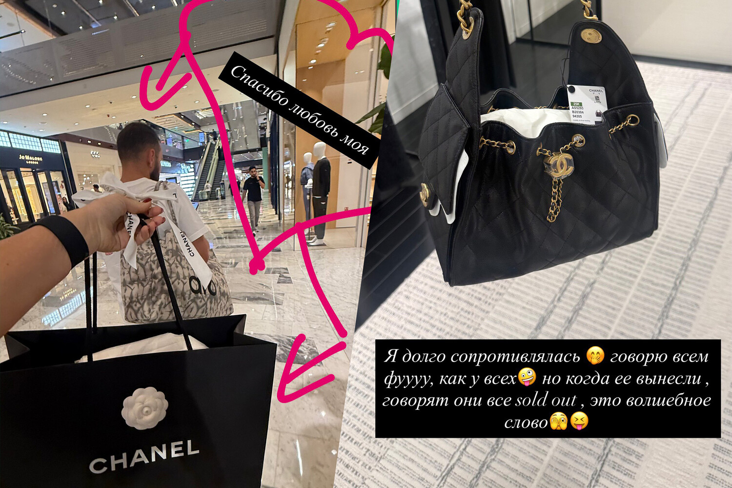 Ксения Бородина рассказала в Instagram (владелец компания Meta признана в России экстремистской и запрещена), что ей понравилась черная кожаная сумка Chanel с золотой фурнитурой. Изначально телеведущая не хотела ее приобретать, но она поменяла свое мнение, когда ей показали изделие в бутике в Дубае. Блогерша получила аксессуар в подарок от своего мужа Николая Сердюкова. По словам журналистов, цена сумки составляет 1 065 000 рублей.