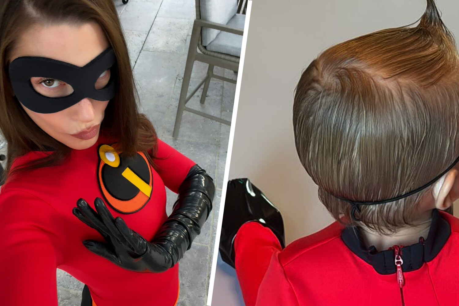 Хейли Бибер нарядилась Эластикой из «Суперсемейки», а ее сын Джек Блюз появился сразу в двух образах: сценическом наряде своего отца Джастина Бибера, а такжев костюме Джек-Джека из мультфильма.