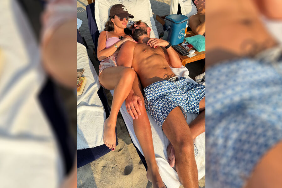 Ксения Бородина в купальнике скрыла живот от камеры на фото с мужем. Пара загорала на пляже в Дубае.