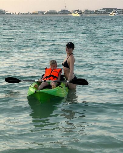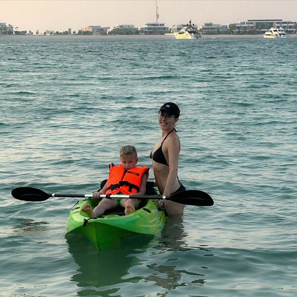 «Море на детские каникулы — это лучший подарок, я считаю. А в тихой Bvlgari-бухте впервые опробовали каякинг вместо джетски. Мама очень довольна, потому как каякинг не дребезжит, не боишься, что он куда-то врежется, ну и вообще руки красивые накачать веслом на отдыхе — дело хорошее», — написала звезда под фото.