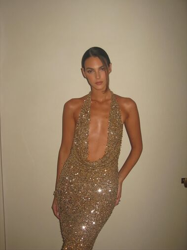 Виттория Черетти посетила 14-й ежегодный гала-вечер «Искусство и кино», который состоялся 1 ноября в Лос-Анджелесе. Модель выбрала для закрытого светского мероприятия золотое макси-платье с декольте до пупка, украшенное пайетками. Манекенщица также надела серьги, браслеты с бриллиантами и кольцо. Знаменитости собрали волосы в гладкий хвост с прядями у лица и сделали макияж.