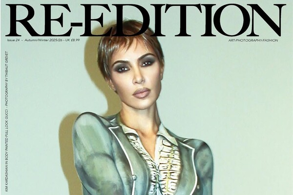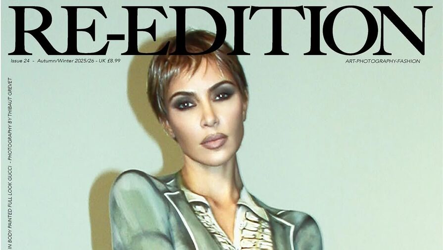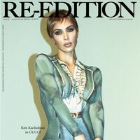 45-летняя Ким Кардашьян стала героиней нового выпуска журнала Re-Edition. На обложке модель позировала без бюстгальтера. Тело звезды реалити-шоу было разрисовано бодиартерами Future Rep и Афиной Пагинтон. Художники изобразили на бизнесвумен образ из новой коллекции Gucci. Ким Кардашьян была запечатлена в парике со светлыми волосами и короткой стрижкой и макияжем с темными тенями и коричневой помадой. Автором съемки выступил фотограф Тибо Греве.