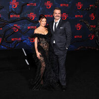 21-летняя Милли Бобби Браун позировала на красной дорожке с 50-летним Дэвидом Харбором. Для выхода на публику актриса предпочла черное кружевное платье с глубоким декольте и перьями. Волосы ей уложили в высокий пучок и сделали вечерний макияж.