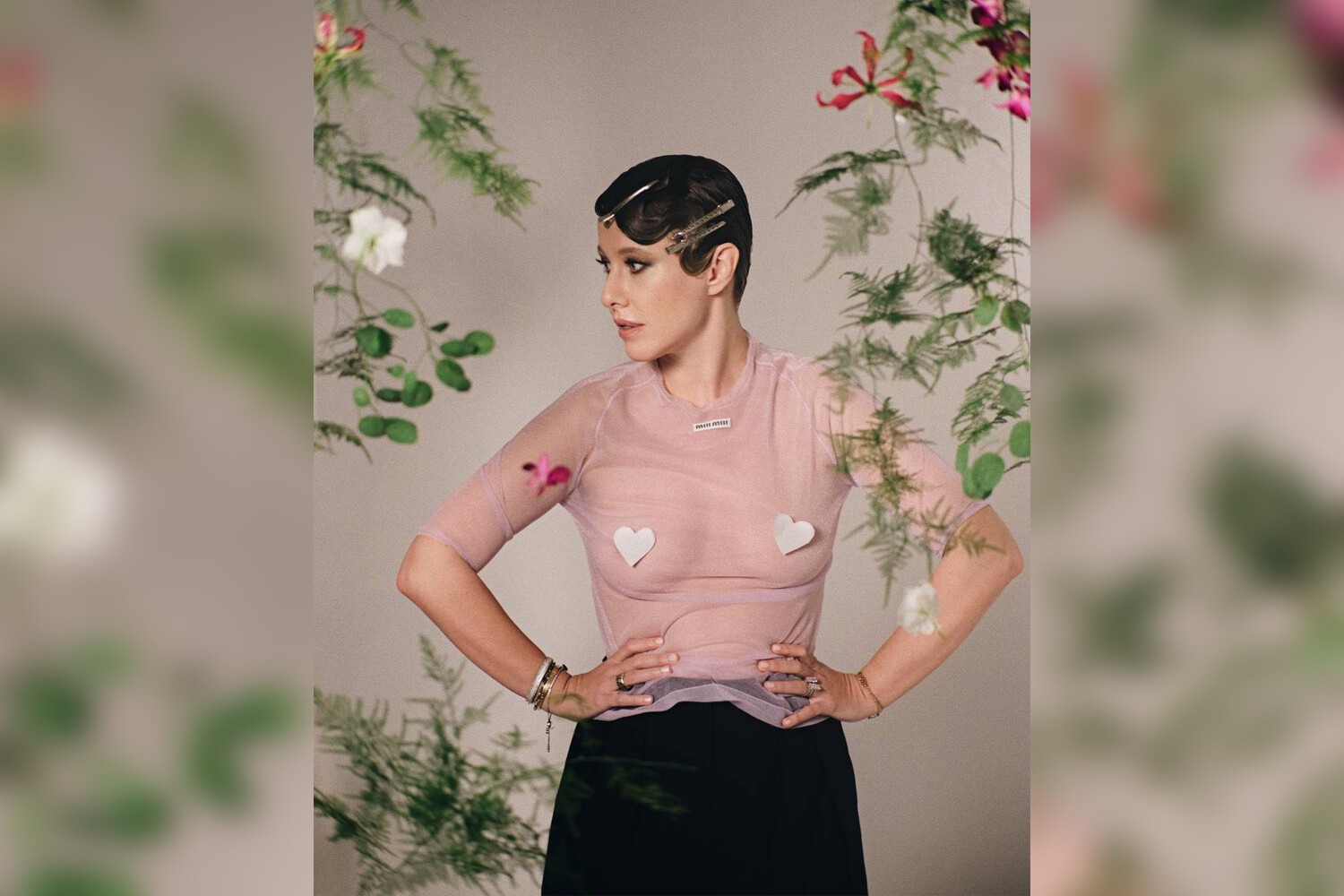 «Чувствуете в моем образе нотку поздних 80-х — ранних 90-х? И не просто так — любовь индустрии и модниц к этой эпохе активно растет в последнее время, ну а я не отстаю. Частично я вдохновлялась творениями Тома Форда, особенно в его одноименном бренде, в котором он часто брал ту эпоху за отправную точку своих коллекций. Кстати, туфли в этом образе тоже от Тома — из коллекции 2019 года, когда еще Форд не покинул собственный бренд. В том сезоне дизайнер в очередной раз вернул секс на подиум, смешав его с гранжевой эстетикой. Думаю, что это настроение мне удалось передать и в своем выходе, но я все же снизила градус накала жакетом Celine», — написала она.
