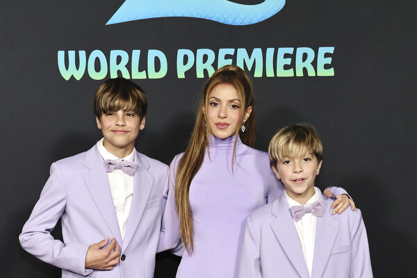 48-летняя Шакира посетила премьеру мультфильма «Зверополис 2» в Лос-Анджелесе. Певица предпочла фиолетовое платье с разрезом. Сыновья были одеты в смокинги такого же цвета.