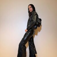 Ирина Шейк снялась в кожаных брюках, косухе, казаках и сумке с шипами. Волосы ей выпрямили и сделала вечерний макияж с угольно-черными стрелками.