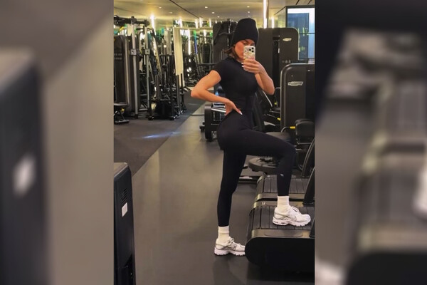 41-летняя Хлои Кардашьян позировала в черных легинсах и топе. Во время съемки бизнесвумен занималась на тренажере.