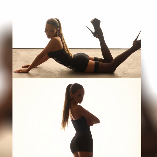 24-летняя Валя Карнавал позировала перед камерой в черном облегающем мини-платье, которое дополнила чулками в тон, массивными серьгами и стрипами. Блогерша была запечатлена с собранными в высокий хвост волосами и макияжем со стрелками и нюдовой помадой.