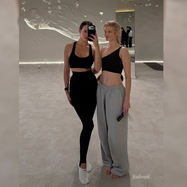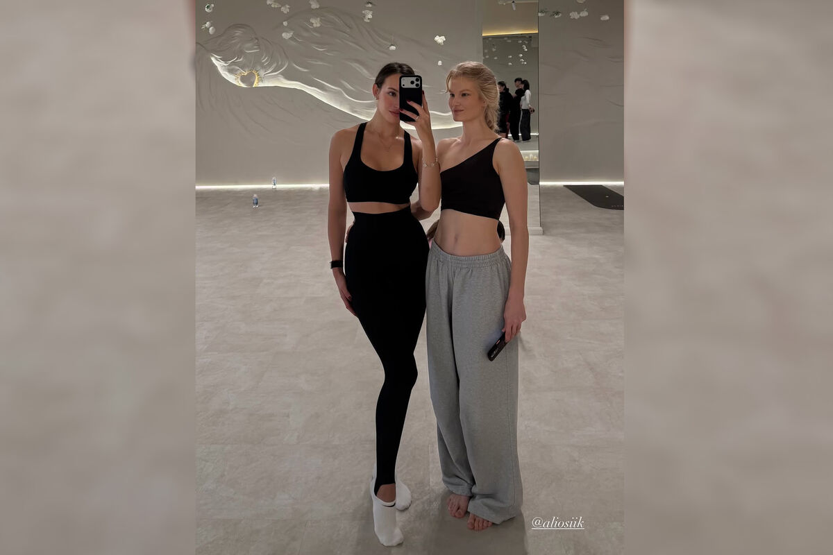 Валентина Иванова снялась перед тренировкой. Девушка Тимати стояла перед зеркалом в черном топе, леггинсах с завышенной талией и носках. Модель также надела серьги, кольцо, часы и браслет. Девушка собрала волосы в хвост и сделала макияж в нюдовых тонах.