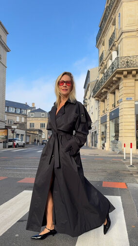 Елена Летучая позировала в черном тренче на голое тело, туфлях и солнцезащитных очках. Волосы ведущая распустила и сделала легкий макияж. Съемка прошла во время ее путешествия по Франции.