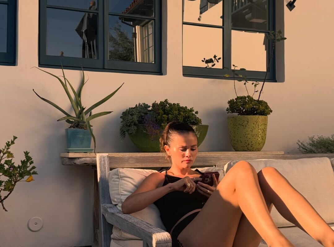 33-летняя Селена Гомес предстала перед камерой в черной майке, коротких шортах и тапках. Поп-исполнительница также надела кольца. Певица была запечатлена с собранными в хвост волосами и без косметики, сидя на диване.