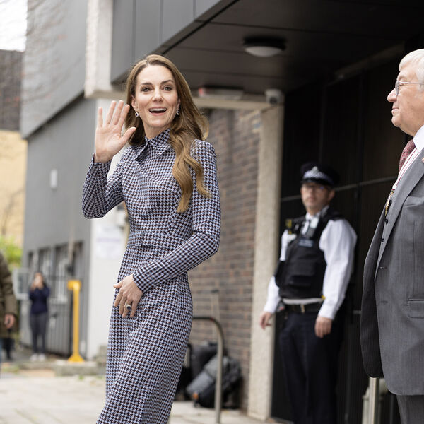 43-летняя Кейт Миддлтон выбрала для выхода платье с принтом «гусиная лапка» от бренда Emilia Wickstead, туфли на каблуке Boss и сумку. Волосы принцессе уложили мягкими локонами и сделали легкий макияж.