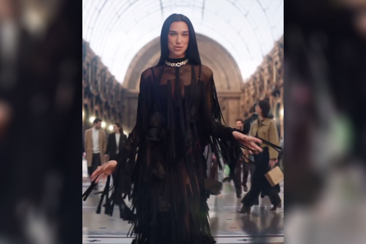 Дуа Липа в черном «голом» платье с сеткой прогулялась по Милану. Волосы певица уложила мягкими прядями и сделала легкий макияж.