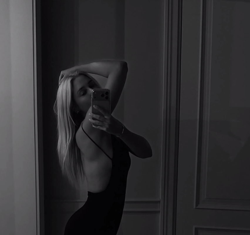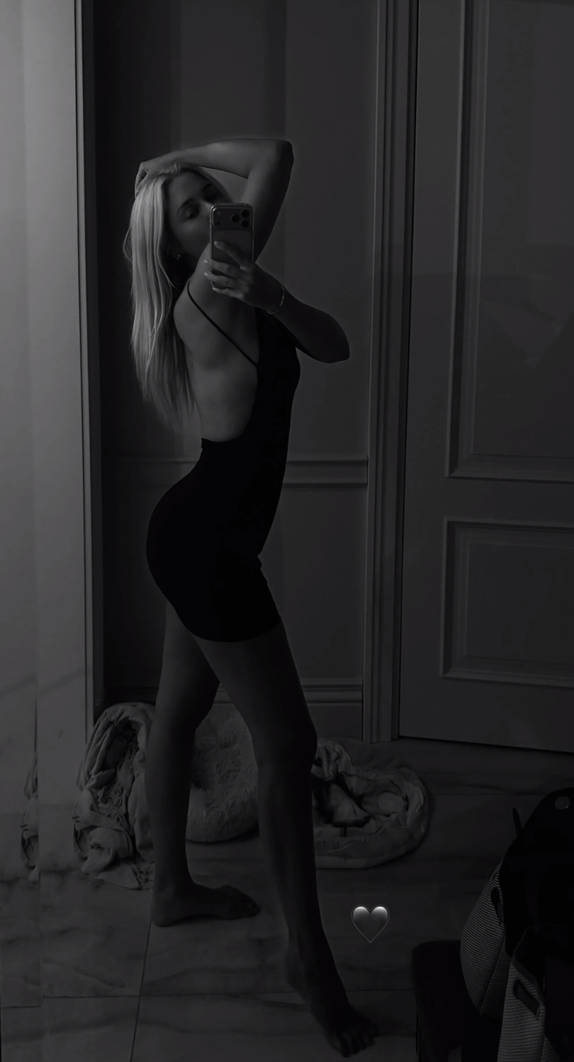 42-летняя Наталья Рудова стояла перед зеркалом в обтягивающем мини-платье на бретелях. Актриса не стала надевать бюстгальтер под наряд. Знаменитость позировала с распущенными волосами.