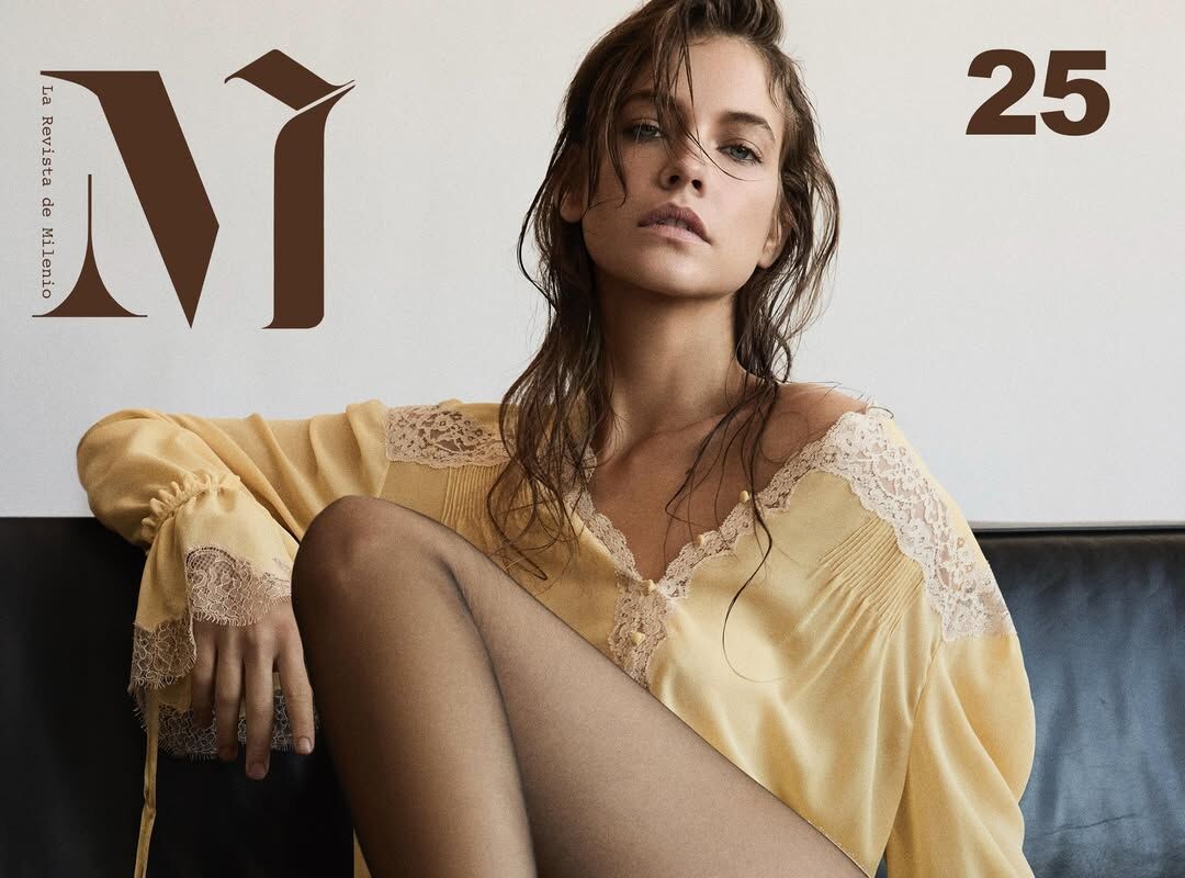 Барбара Палвин стала героиней нового выпуска журнала M de Milenio. На одной из обложек 32-летняя модель предстала в желтом микроплатье в бельевом стиле с кружевом, черных колготках и бордовых атласных туфлях. Манекенщице сделали укладку с эффектом мокрых волос и макияж с коричневыми тенями. Знаменитость позировала, сидя на кожаном диване.