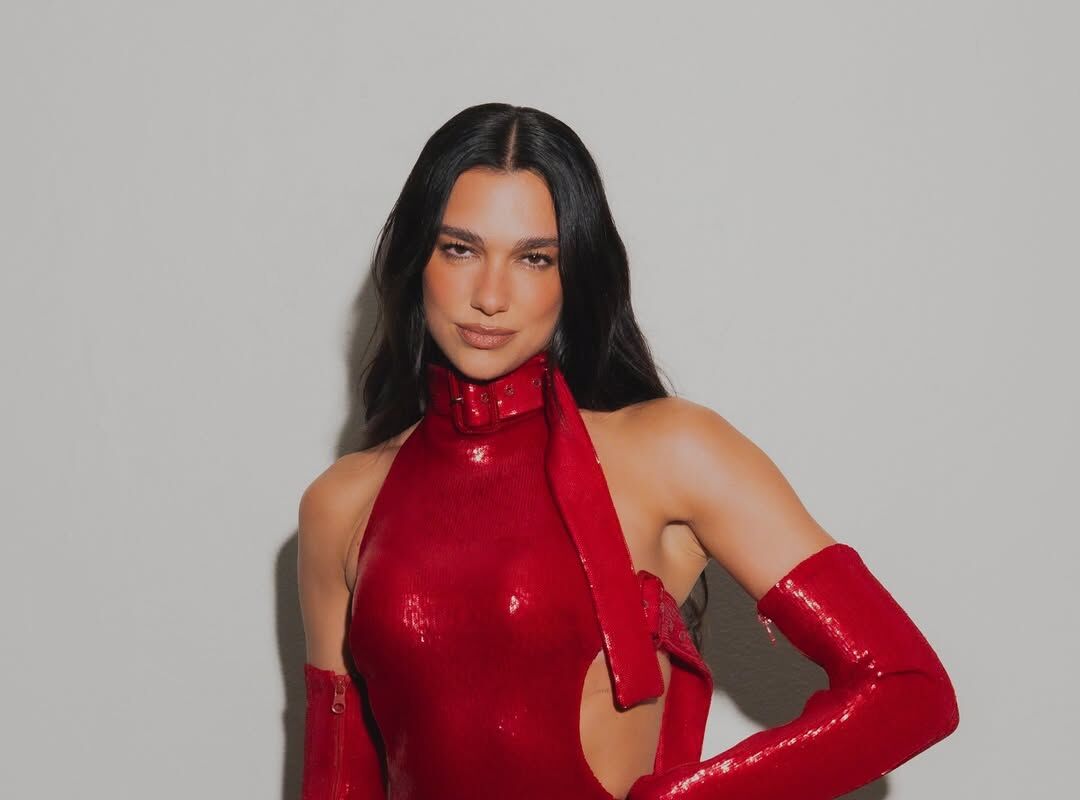 Дуа Липа показала кадры, сделанные на одном из ее выступлений. Певица вышла на публику в красном боди с вырезами по бокам, которое было украшено пайетками. Образ поп-исполнительницы дополнили длинные перчатки в тон костюму и колготки в сетку. Визажист сделал знаменитости макияж с черными стрелками, коричневой помадой и румянами, а стилист уложил волосы в локоны.